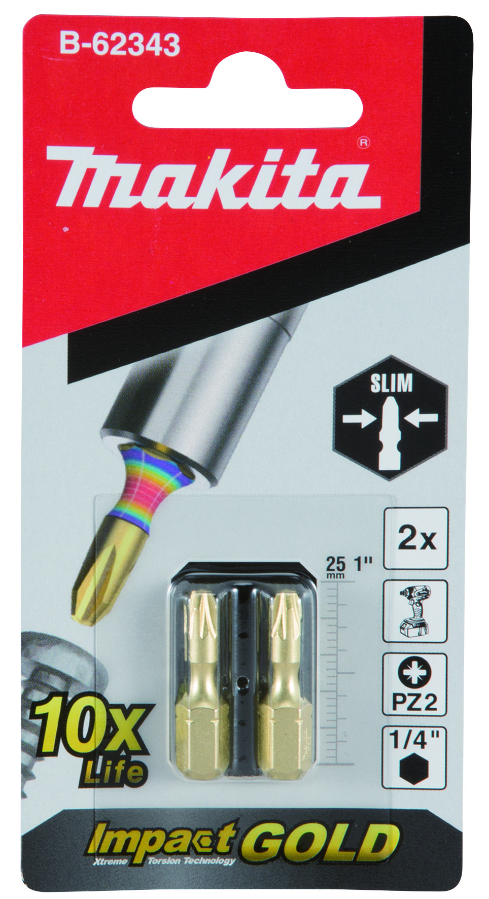 Makita tenký torzní bit PZ2-25mm 2pcs